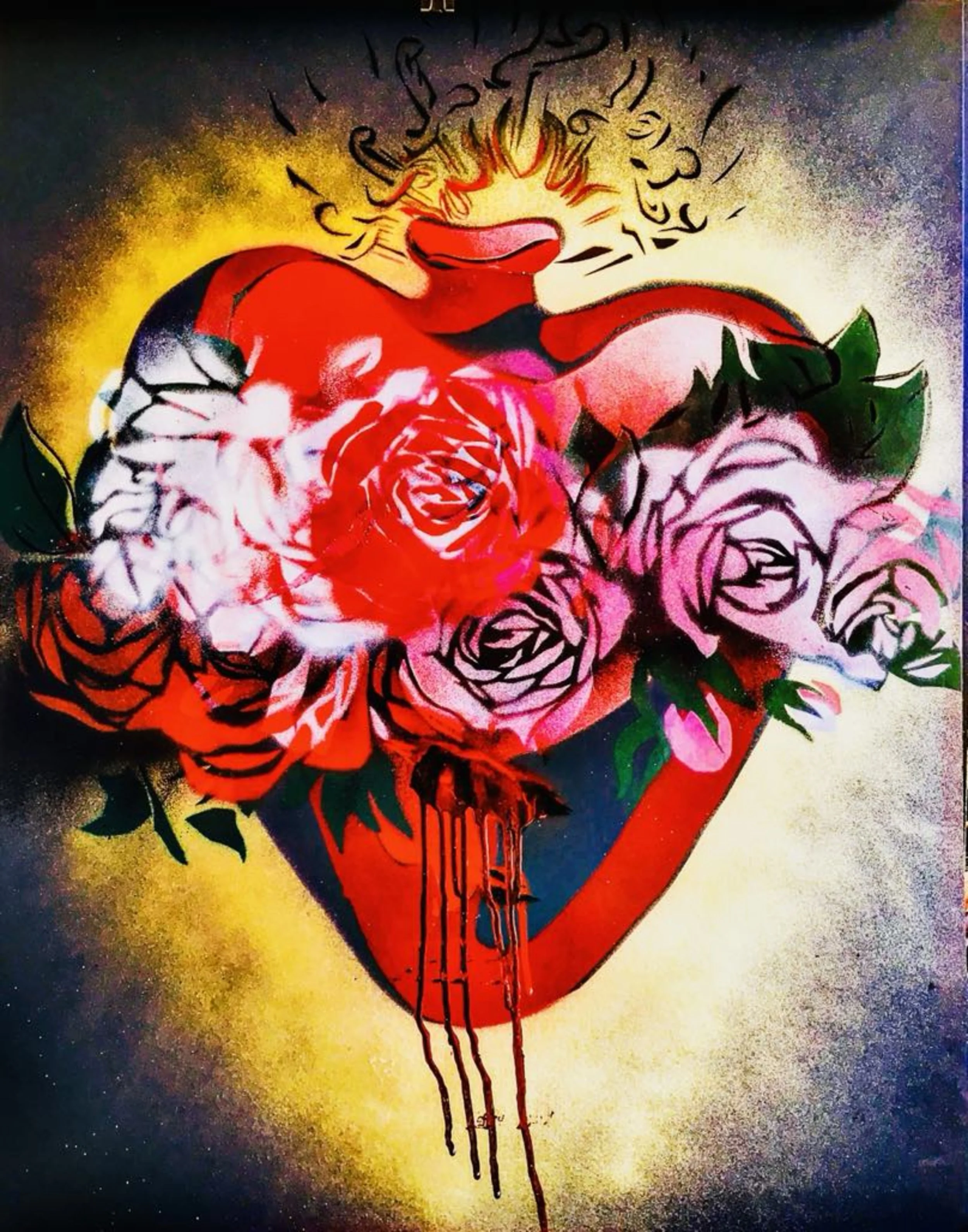 At Roquero Art Works, oil paintings, mixed-media portraits, murals, protest graphics, apparel, and phygital projects all live under the same roof. The work borrows freely from multiple worlds: museum walls, city streets, classrooms, pop-up galleries, and community spaces.